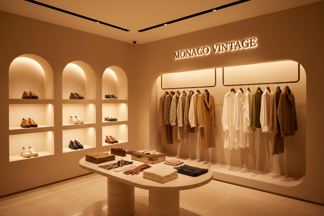 Refined Simplicity, Clean Lines, Natural Materials — The Monaco Vintage boutique reflects the quiet elegance of our collections.
